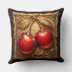 Coussin Deux cerises rouges brillantes avec des Feuilles d