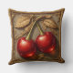 Coussin Deux cerises rouges brillantes avec des Feuilles d