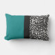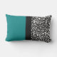 Ce coussin lombaire extérieur tendance comporte de grands blocs de couleur rectangulaires en vert turquoise et un empreinte de léopard argenté et noir, divisé par un bloc de couleur noire plus étroit au centre.
