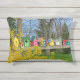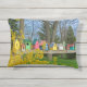 Ce coussin présente une rangée d'oiseaux colorés qui dorment au soleil du printemps. Un buisson forsythia jaune, des arbres, le ciel bleu et l'herbe verte encadrent la rangée de maisons d'oiseaux uniques. Montrez votre amour pour les amis à plumes et leurs oiseaux.