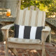 Ce coussin lombaire extérieur est doté d'un motif de cinq larges bandes verticales en noir et blanc.