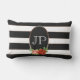 Coussin D'extérieur Élégant bronze floral noir blanc rayé Monogramme
