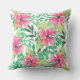 Coussin D'extérieur Fleur rose florale et feuillage vert tropical