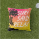 Fuchsia rose, orange, jaune, noir et blanc colorway. Surf, Sable et Relax nous calme alors que des brises tropicales soufflent à travers les palmiers, lorsque des vagues douces s'écrasent sur le rivage de Kapaa Beach sur la rive est de Kauai. L'arrière de notre design revient à des bandes de plage audacieuses.