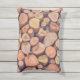 Coussin lombaire extérieur original avec cheminée de bois rond.