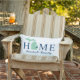 Le coussin de bienvenue élégant comprend du texte "Accueil" avec la carte de l'état du Michigan et du texte personnalisé qui peut être personnalisé avec votre nom de famille et la ville, l'état où vous vivez. Le marqueur de la ville centrale peut être déplacé à l'endroit approprié par l'intermédiaire Customisé. Les bandes horizontales s'habillent à l'envers. Couleurs bleu marine, vert jade/menthe et blanc.