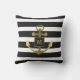 Coussin D'extérieur Monogramme rayé d'Ancre nautique noire et blanche