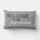 Coussin D'extérieur Rustic Grey Burlap Bienvenue À Notre Ferme