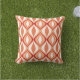 coussin de plein air avec une grille diamant moderne du milieu du siècle de formes marquises imbriquées - corail orange clair et profond, avec des accents orange mandarins blancs et foncés
