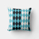 Cette motif en diamant rétro, bleu turquoise, noir et blanc, est une grande coussin de style mobilier moderne du milieu du siècle. Quel éclat de couleur amusant dans votre maison.