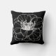 Coussin moderne noir et blanc avec une silhouette de fleur.