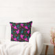 Coussin Doodle pattern flowers, leaves birds black backgro