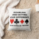 Les joueurs de pont qui connaissent le jeu de pont / pont dupliqué se régaleront de cet oreiller de lancer avec les quatre costumes de carte avec l'explication suivante du jeu du pont : "Doubler et mettre vos adversaires est le nom du jeu". Faites faire aux autres une double prise avec votre explication de ce que le jeu de pont est tout avec cet humour de pont ironique jeter l'oreiller!