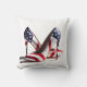 Des chaussures à talons hauts au design inspiré du drapeau américain sont positionnées contre un arrière - plan blanc clair