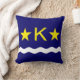 Lancer l'oreiller avec le design avec le drapeau de Kinshasa, capitale de la République Démocratique du Congo, le drapeau bleu avec la vague blanche, deux étoiles dorées et la lettre "K" au centre