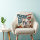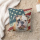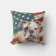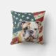 Un beau portrait en aquarelle d'un beau Bulldog est placé contre un arrière - plan grognon du drapeau américain. Les deux côtés du coussin ont la même image.