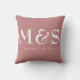 Un mariage simple et chic script jetez une suite d'oreiller pour les mariées qui ornent leurs cérémonies en rose poussiéreux. Tous ensemble sur une police blanche moderne avec initiales sur le côté.