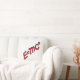 Nous avons fait faire des portes clés et un coussin , avec Emoji de mon fiancé.