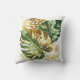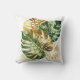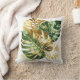 Beau oreiller jetable très décoratif avec de l'or et de l'aquarelle verte monstère feuille illustration sur un arrière - plan blanc.