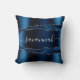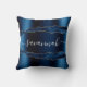 Coussin Écriture de nom de marbre d'agate d'or bleu