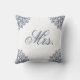 Ce coussin élégant blanc et bleu avec un mot en écriture Mme est un produit assorti pour faire un ensemble de deux coussins pour les jeunes mariés. C'est une belle décoration pour la maison qui présente des mandalas fleuris dans les coins. Décorez la chambre à coucher, le salon ou d'autres espaces de vie avec style. Ce design est une bonne idée pour une décoration de ferme moderne ou dans le cadre d'un style bohème chic.