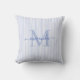 Add a soft, stylish touch to your home with this elegant personalized pillow. Featuring a blue and white striped background, this decorative cushion is customized with your monogram initial and name in a fancy script font, creating a timeless and feminine look.