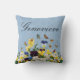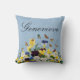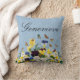 Oreiller personnalisable élégant Boho avec de jolies fleurs printanières colorées de pensées, de jonquilles et de papillons sur un fond bleu pâle victorien vintage.