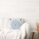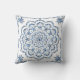 Coussin décoratif délicatement orné sur le thème du mandala indien, couleurs blanc et bleu métallisé.