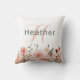 Élégant Oreiller Floral Rose. Ce magnifique design présente des roses et des dahlias roses poussiéreuses, des hydrangées de crème et des feuilles d'eucalyptus verts et bordeaux. Personnalisez-vous avec le nom et l'initiale pour un cadeau unique et élégant ou un bon souvenir pour vous-même.