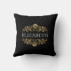 Une élégante et chic taie d'oreiller monogramme noir et or. Ajoutez votre nom entre la floraison dorée sur le devant. Conçu pour vous par Blackberry Boulevard.
