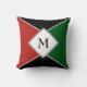 Simple mais élégant MONOGRAM PERSONNALISABLE Jetez l'oreiller montrant des triangles et carré dans les couleurs PAN AFRICAINES de ROUGE, NOIR et VERT. Couverture en polaire correspondante disponible.