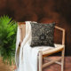 Coussin Élégant Monogramme Floral Argent Noir