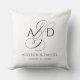 Élégant Script initial Monogramme Mariage classique jeté oreiller dispose d'une délicate ampersande et vos initiales, ainsi que les noms de la mariée et du marié et la date mariage.