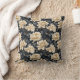 Elégante crème fleurie et feuilles turquoises sur noir vintage décorateur coussin