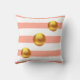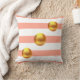 Coussin Élégantes boules d'or sur rose et blanc rayé