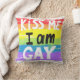 Cette oeuvre d'art présente un arc-en-ciel coloré avec la phrase "Embrasse-moi je suis gay".