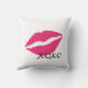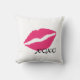 Des lèvres roses, vives, audacieuses, mettent le coussin de cette XOXO sur un arrière - plan blanc. Ce coussin peut facilement être customisé avec un nom ou un monogramme si vous le préférez, et fait un cadeau sucré pour la Saint-Valentin ou un anniversaire.