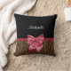 Restez à la mode avec cet élégant empreinte de léopard en fourrure brune lance l'oreiller avec un élégant ruban rouge attaché dans un arc chic. Personnalisez ce design poster de animal moderne et élégant en ajoutant votre nom. Image imprimée plate, pas de fourrure ou de ruban réel.