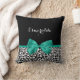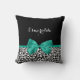 Personnalisez en ajoutant le nom de n'importe quelle fille à ce carré empreinte de léopard à la mode noir et blanc jetez l'oreiller avec un ruban vert émeraude ceint dans un joli arc. Ce design poster de animal élégant est une image à impression plat, et ne contient pas de ruban réel.