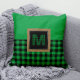 La conception de l'oreiller à jetons de buffle vert et noir de Mme Monogram comprend votre monogramme en plaid de buffle vert et noir placé sur un carré noir à l'intérieur d'une bordure avec accent de burlap. L'arrière - plan est mi-assorti à gros buffle vert et noir plaid et mi-vert solide. #BuffaloPlaid #En vichy #Monogram