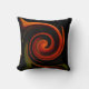 Cet oreiller décoratif à jets dispose d'un motif circulaire à bulles aux couleurs brillantes de rouge, orange, vert, jaune, marron et noir. Le design abstrait est une vision impressionniste de l'énergie tourbillonnante de la création.