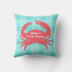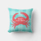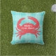 Coussin extérieur personnalisé amusant traité UV fait dans un motif aqua et blanc. Graphiques d'une silhouette corallienne d'un crabe, orne le milieu du coussin, avec texte blanc personnalisé. Personnalisez le texte, pour vous-même ou comme une excellente idée cadeau.