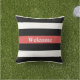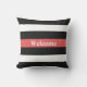 Carreau extérieur bienvenu rayé blanc et rouge noir. L'accueil apparaît sur une rayure rouge dans les lettres blanches.