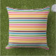 Coussin de plein air pour tous ceux qui aiment lumineux et festif, disposent de rayures horizontales de bleu, rose, orange, blanc, jaune, vert,