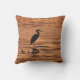 Ce coussin extérieur comporte un héron de grand bleu (herodias d'ardea) en silhouette, pêchant dans les eaux peu profondes du lac Cayuga dans Ithaca, NY qui est l'un des lacs finger de New York hors de la ville. Un beau coucher du soleil orange, jaune et d'or colore les vagues et les ondulations dans un motif abstrait.