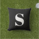 Coussin extérieur classique noir initial monogrammé. Coussin extérieure décorative avec une seule initiale. Personnalisez rapidement et facilement.