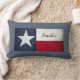 Ce coussin lombaire marrant rouge, blanc et bleu est personnalisé avec votre nom de famille. Le drapeau du Texas de l'état étoile Lone. Disponible en différentes tailles et matériaux.