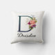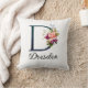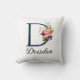 Beautiful throw pillow fegold leaves, purple rose and blue wildflowers embellishments on large letter / Initial Personalize with name or other message