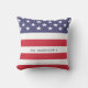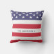 Le Patriotique Rouge Blanc et Bleu étoiles et rayures Jour de l'Indépendance 4 juillet thème avec le nom de famille coussin en extérieur. Faites un grand cadeau ou un ajout pour ce Jour de l'Indépendance 4 juillet pour votre décor de patio.