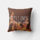 Le cadeau rustique personnalisé parfait de décor pour des rvers, des randonneurs, des campeurs, et des types outdoorsy est ce coussin rustique de thème mignon de camping. Il lit des profondément satisfaits dans manuscrit, toutes les lettres blanches capitales. Sous est le nom personnalisé de la famille ou de n'importe quel texte fait sur commande que vous aimez dans les lettres lunatiques et blanches. Sur le fond de feu de camp d'un plan rapproché d'un feu et d'un bois brûlants. Cadeau mignon de retraite, aussi.